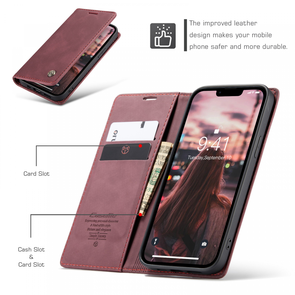 CaseMe 013 Series läderfodral till iPhone 14 Plus, röd