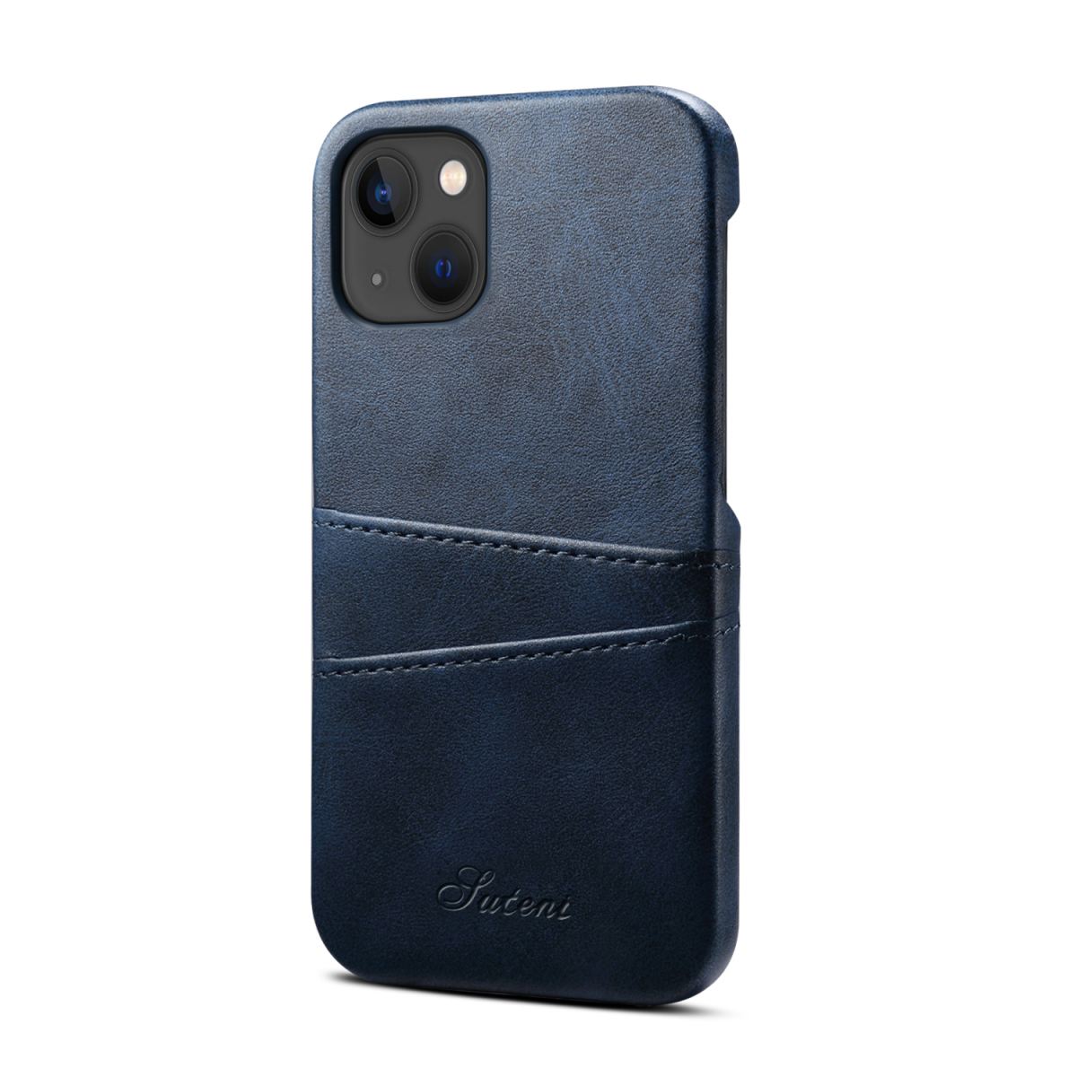 Läderskal med 2 kortplatser till iPhone 14 Plus, blå
