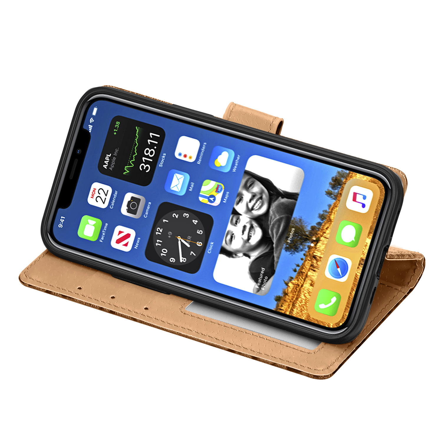 Leopard läderfodral med ställ/kortplats, iPhone 12 Pro Max, guld