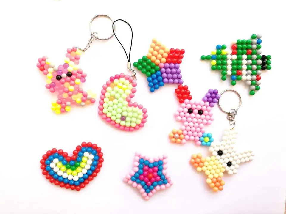 Waterbeads, eller vattenpärlor som de också kallas, är ett smidigt och roligt sätt att göra fina saker med pärlor utan att behöva ta fram strykjärnet. Prova dig fram med pärlor i 24 färger och skapa figurer eller vackra mönster, antingen dina egna eller genom att följa bilden på de medföljande korten - när du är nöjd så tar du fram sprayflaskan och spraya vatten på det du skapat. Då härdas pärlorna och klistras ihop, låt det torka en stund och sen ta försiktigt av motivet. Det håller nu ihop av sig självt och kan böjas en hel del utan att gå sönder.