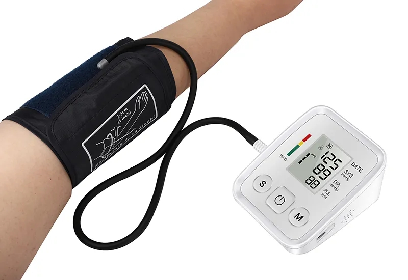 Håll koll på ditt blodtryck med lätthet och precision med vår trådlösa blodtrycksmätare. Denna avancerade enhet gör det möjligt att göra automatiska mätningar med ett enkelt knapptryck och ger tydlig information på den lättläsliga LCD-displayen. Dessutom har den en praktisk minnesfunktion och röstuppläsning för extra bekvämlighet.