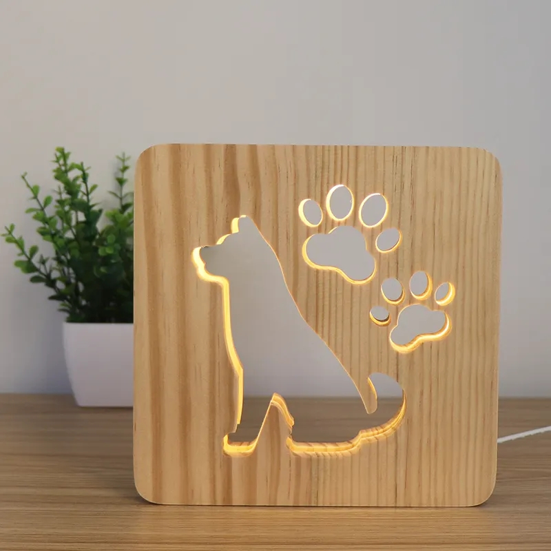 Denna LED-lampa är en praktisk och mångsidig belysningslösning som kommer att förbättra atmosfären i ditt hem eller arbetsutrymme. Den här lampan drivs enkelt via USB, vilket gör den bekväm att använda både hemma och på kontoret. Den här varianten har ett trevligt hundmotiv med tass-avtryck.